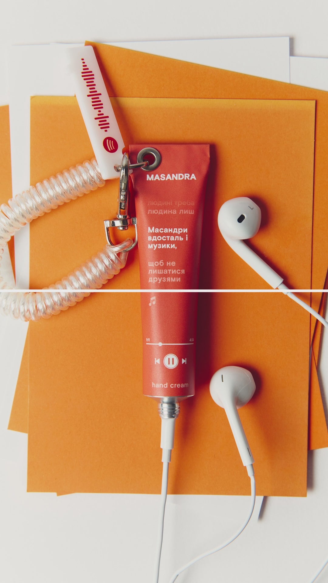 у наборі до кожного мінікрему (20 мл) — брелок зі spotify-кодом, що веде прямо на трек, і пружинний карабін, який можна носити як аксесуар.